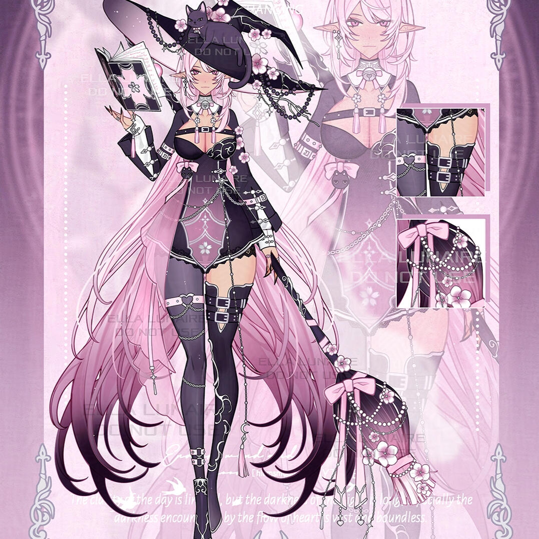 In the realm between shadows and the unknown. There lies a domain that uses desire as currency. It is said to breed predators of the dark and birth temptation. A place often talked about, yet unreachable by the ordinary.This is where Ella Lunaire’s story begins.A succubus, yes—but not like the ones you’ve heard about in old folklore and songs. While others were bound by hunger, desire, or instinct, she simply… existed. Light-hearted. Curious. and quite peculiar. She wandered through worlds with an open heart and soft gaze, unintentionally enchanting everyone she met along the way.People often mistook her kindness for something more. A tilt of her head, a warm word, a passing smile—and before anyone could notice, they could swear they were in love. Over time, she stopped correcting them. It became a playful rhythm: "Ten boyfriends? Today? Perhaps. Tomorrow? Maybe more? We’ll see." But no one knew, only one held the title that mattered, though. (Not that anyone actually believed this.) The rest? Fleeting stars—bright, and burning, but not hers to keep.Beneath this dance of affection & desire, Ella felt... different. Always. There was an ache inside her that she couldn't explain in words. It felt like waiting for something she couldn't name.Little did she know—she was the embodiment most wouldn’t even dare to dream of. Legend has it that once every 100,000 years, a rare succubus is born not to consume, but to transform. To gather admiration, desire & even lust not as mere sustenance, but as magic—raw, unshaped energy meant to awaken something far greater than we could imagine.She was that one, like that star that lit brighter than the others in the dark sky.Her familiar, Asteria, was a shapeshifting feline born from her own shadow. Astra knew this truth, and with great knowledge comes even greater responsibility. Playful but ancient, in the unbreakable cycle of decay and rebirth. Astra watches quietly, guiding her with riddles and purring nudges toward her true potential. It is said that Astra holds the memories of all who came before—those who almost became what Ella is destined to be.And thus, both of them travel. Sometimes with direction and sometimes by fate.A succubus not driven by hunger, but by wonder. A beauty not gifted to tempt, but to enchant. Owning the ability to harness energy not with mere seduction, but through presence.Her powers bloom like constellations across her skin—sometimes subtle, sometimes radiant. She shifts her form like stardust molding itself into something beautiful. Her magic shone bright like ancient stars. And still, she keeps her heart light, her touch gentle, and her mischief soft.She is Ella, the one who playfully ranks her suitors by the value of their deeds, but never loses sight of her own truth.She does not exist to take from you.She exists to show you what you already carry deep within.And perhaps, in time, to become the myth even stars will whisper about for eons to come.